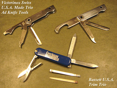 Victorinox Swiss Army Bassett USA Trim Ad Key Chain Vtg Pocket Knife Tools Lot