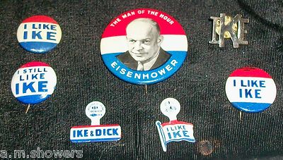 7 ORIGINAL EISENHOWER POLITICAL PINBACKS AND PINS