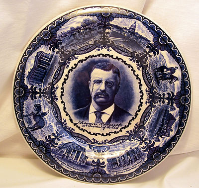 Title (ebay affiliate link): Rowland & Marsellus Staffordshire Flow Blue Theodore Roosevelt Collectors Plate