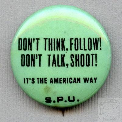 Title (ebay affiliate link): Vintage Political Button DON'T THINK, FOLLOW/ DON'T TALK, SHOOT SPU