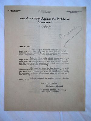 Title (ebay affiliate link): IOWA ASSOCIATION AGAINST THE PROHIBITION AMENDMENT LETTERHEAD 1932