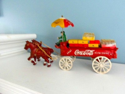 Title (ebay affiliate link): Coca Cola Cast Iron Horse Drawn Wagon with Coca Cola Bottle Cases