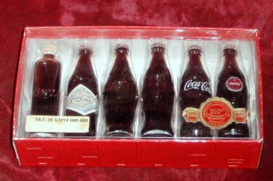 Title (ebay affiliate link): COCA COLA 100 YEARS OF COCA COLA BOTTLING MINI BOTTLES SET 6 BOTTLES IN BOX