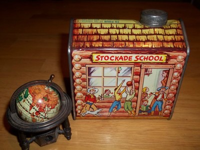 Title (ebay affiliate link): Antique Log Cabin Syrup Stockade School Children Tin Can #2 & pencil sharpener
