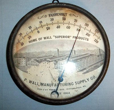 Title (ebay affiliate link): Vintage Rare P Wall Manufacturing Company Metal Thermometer