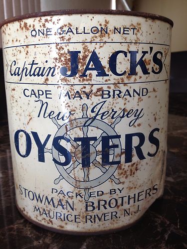 Title (ebay affiliate link): Vtg Captain Jacks Cape May Brand Oyster Can Tin New Jersey Stowman Brothers 1gal