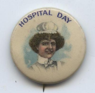1920'S HOSPITAL DAY PINBACK WITH IMAGE OF NURSE - TO SHOW SUPPORT FOR HOSPITALS