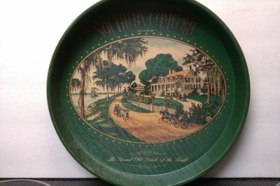 Title (ebay affiliate link): Vintage Bristol Ware Round tin serving tray green Southern Comfort