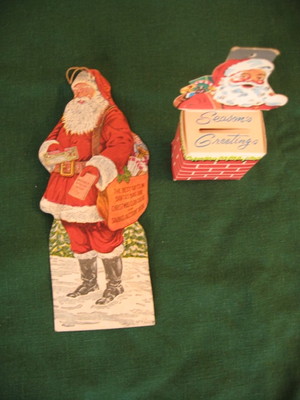 Two vintage cardboard advertising Christmas ornaments
