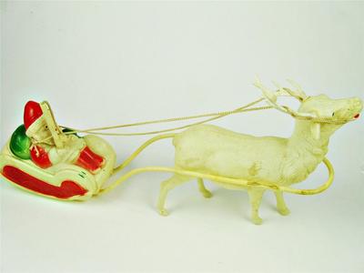 Title (ebay affiliate link): VINTAGE CELLULOID SANTA SLEIGH REINDEER CHRISTMAS FIGURINE