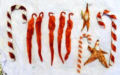 10 Victorian Pipe Cleaner Christmas Tree Ornaments Icicles Candycane Santa VTG