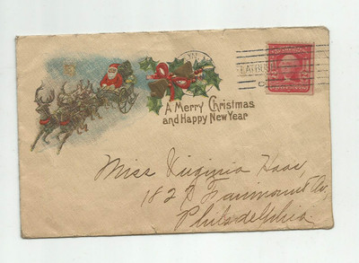 Early 1900's Santa Claus Merry Christmas Happy New Year Envelope Philadelphia Pa