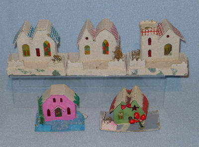 Title (ebay affiliate link): Lot Vintage Prewar Paper Christmas Village Houses + 2 1950's, Old Xmas Decor