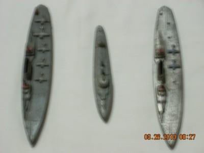 VINTAGE TOY SHIPS BOATS AIRCRAFT CARRIER 1940'S METAL LOT OF 3