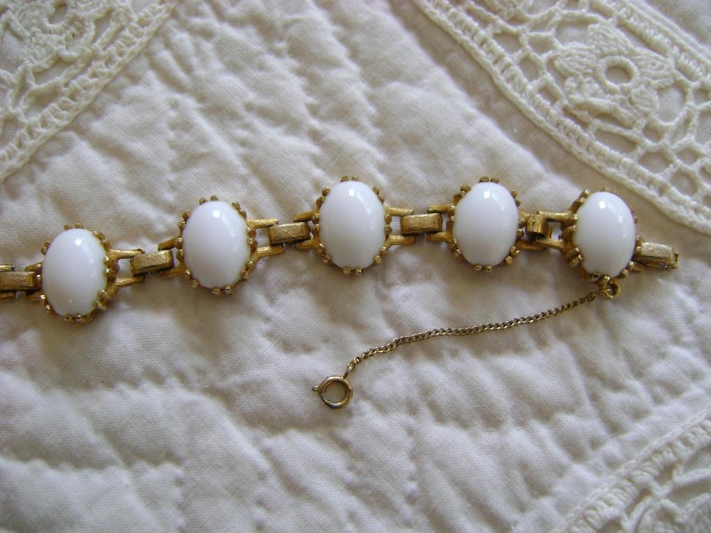 VINTAGE SIGNED WEISS MILK GLASS BRACELET W SAFETY