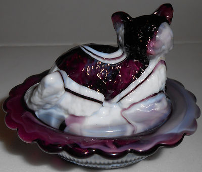 Title (ebay affiliate link): Amethyst purple & milk slag glass salt celt cat kitten kitty on nest basket dis