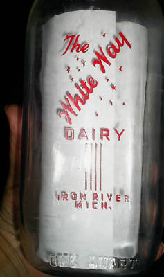 Quart Milk Bottle, The White Way Dairy, Iron River, Mi