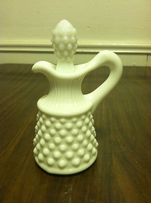 Title (ebay affiliate link): VINTAGE WHITE MILK GLASS HOBNAIL PERFUME BOTTLE / CRUET - AVON