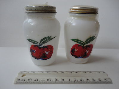 Vintage White Milk Glass Salt & Pepper Shakers w Apples