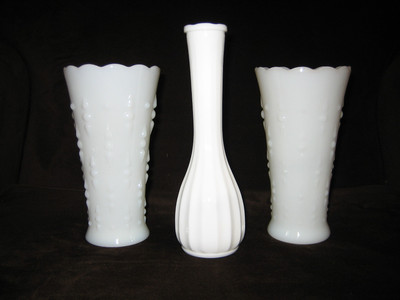 Beautiful Vintage Milk Glass Vase Trio - CLG Co Included