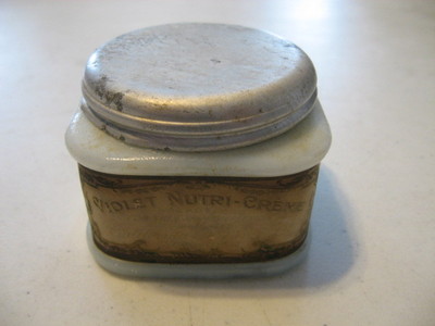 Title (ebay affiliate link): Vintage Violet Nutri-Creme Milk Glass Container From California Perfume Company