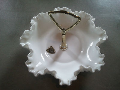 Title (ebay affiliate link): Vintage Fenton White Milk Glass Hobnail Ruffle Tidbit,Nut,Candy Dish Tray Handle