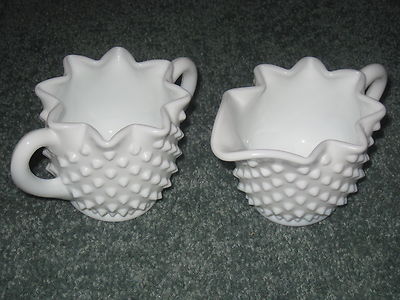 VINTAGE FENTON hobnail, milk glass cream and sugar.