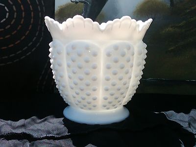 Title (ebay affiliate link): Fenton Hobnail Milk Glass Vintage Planter 6" Scalloped Top Signed Bowl or Vase