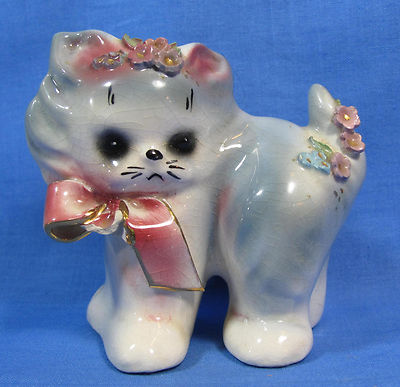 Title (ebay affiliate link): Vintage Josef Originals Puff Gray Cat Kitten Flowers Ribbon Porcelain Figurine