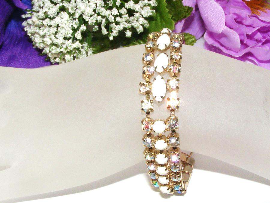 VINTAGE RHINESTONE MILK GLASS BRACELET AURORA AB