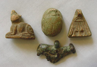 Title (ebay affiliate link): 4 OLD CHARMS-AMULETS EGYPT, CLAY AND BRONZE METAL