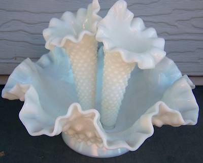 Vintage Fenton Hobnail Epergne Vase Milk Glass