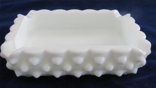 VINTAGE FENTON RECTANGULAR MILK GLASS HOBNAIL ASH TRAY -