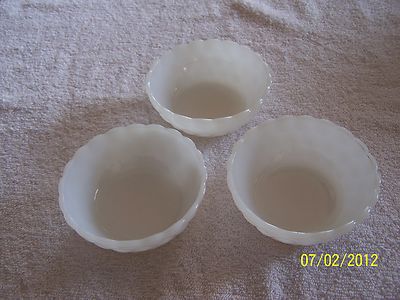 Title (ebay affiliate link): Set of 3 Vintage White Milk Glass Bowls Hobnail Pattern with Ruffled Edge