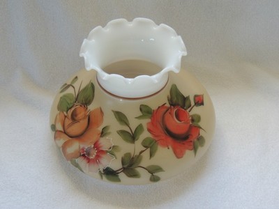 Milk glass handpainted flowers hurricane lamp shade