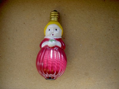 vintage electric tree light of a Christmas girl in red dress yellow hair working