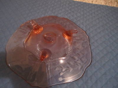 Pink Depression etching Glass Footed Rib Design Bowl