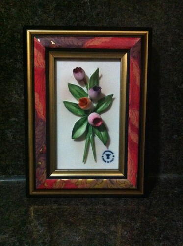 Title (ebay affiliate link): VTG CAPODIMONTE PORCELAIN TULIP ROSE BOUQUET BUILT- IN FRAME WALL ART