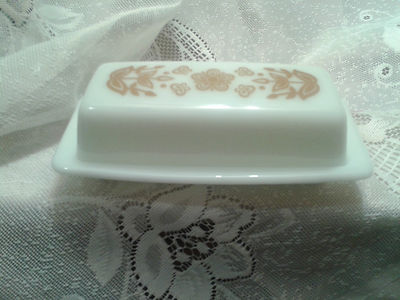 PYREX BUTTERFLY GOLD 1/4 LB. BUTTER DISH MILK GLASS