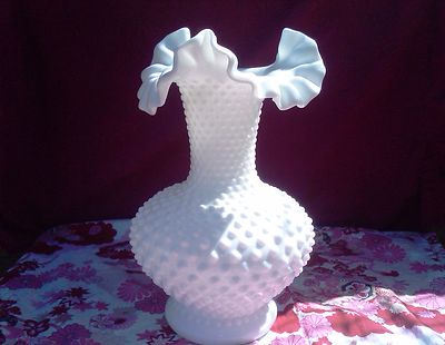 Title (ebay affiliate link): VINTAGE FENTON WHITE HOBNAIL RUFFLED CRIMPED VASE MILK GLASS ART euc!!