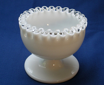 Title (ebay affiliate link): 1961 chip/dip bowl 3.5" Fenton Silver Crest White Milk Glass VTG Rare 7303 SC