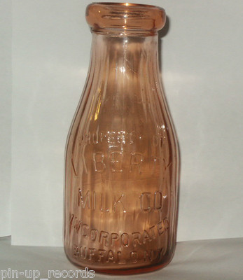 Title (ebay affiliate link): Liberty Milk Co Buffalo NY Co PINK Ribbed Milk Bottle-One Pint *Bubble in Glass*