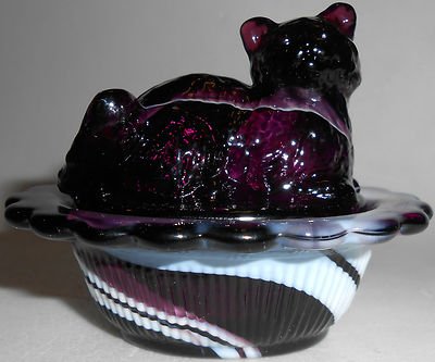 Title (ebay affiliate link): Amethyst purple & milk slag glass salt celt cat kitten kitty on nest basket dis