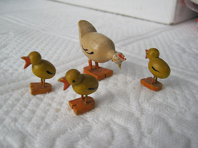 Title (ebay affiliate link): Vintage Antique German Germany Wood Hen 3 Chicks Erzgiberge Putz Easter AS IS