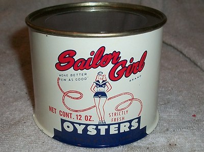Title (ebay affiliate link): Vintage Sailor Girl Pint 12OZ OYSTER TIN CAN Edwin Plitt Chicago ILL MD 116