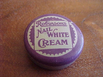 Title (ebay affiliate link): Old Antique Lithograph Medicine Tin ROBINSON'S NAIL WHITE CREAM