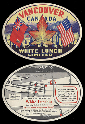 Title (ebay affiliate link): White Lunch VANCOUVER Canada - vintage bothside label of historic restaurant