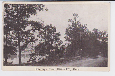 Title (ebay affiliate link): KINSLEY KS KANSAS POSTCARD GREETINGS FROM ROAD SCENE RIVER 1924 RARE