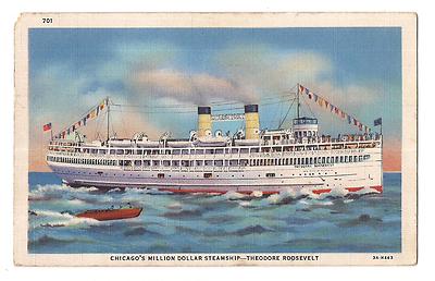 Title (ebay affiliate link): 1933 Early Linen Postcard-Million $ Steamship-Throdore Roosevelt, Chicago, IL