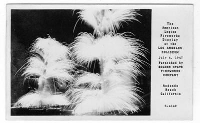 American Legion Fireworks Display, Los Angeles Coliseum, Frasher Foto, RPPC